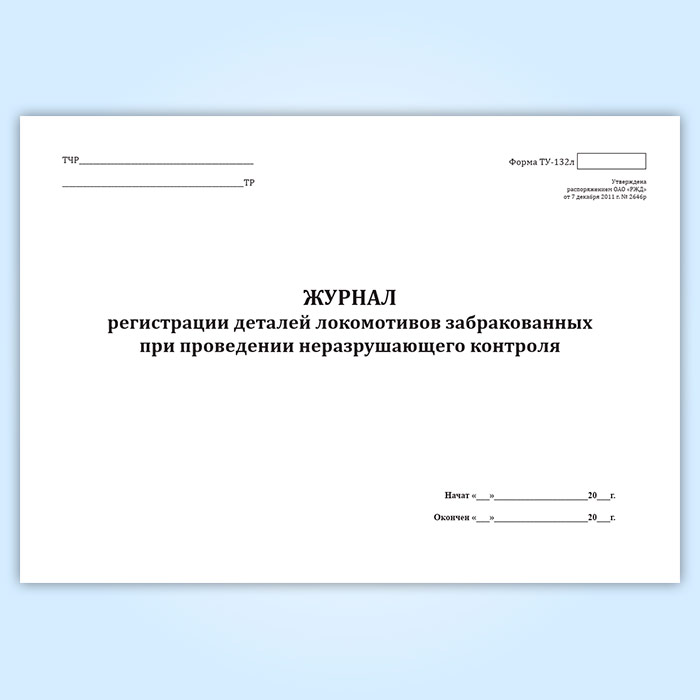 Журнал регистрации деталей локомотивов, забракованных при проведении неразрушающего контроля (форма ТУ-132л) в Волгограде купить