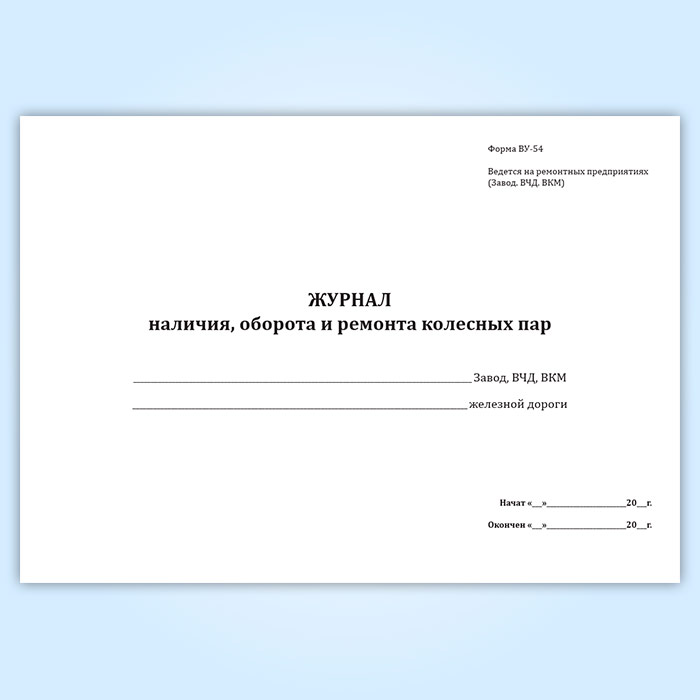 Журнал учета наличия, оборота и ремонта колесных пар (форма ВУ-54) в Волгограде купить