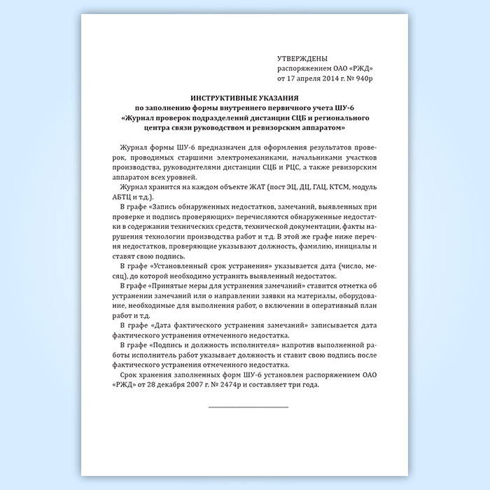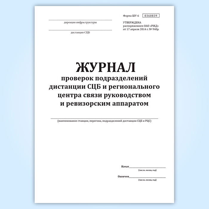 Журнал проверок подразделений дистанции СЦБ и регионального центра связи руководством и ревизорским аппаратом (форма ШУ-6) в Волгограде купить