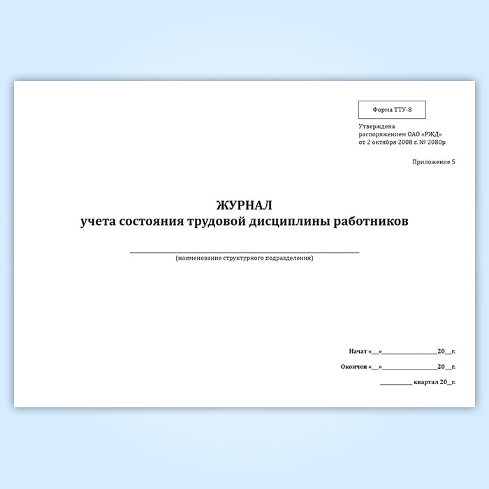 Журнал учета состояния трудовой дисциплины работников (форма ТТУ-8) в Волгограде купить