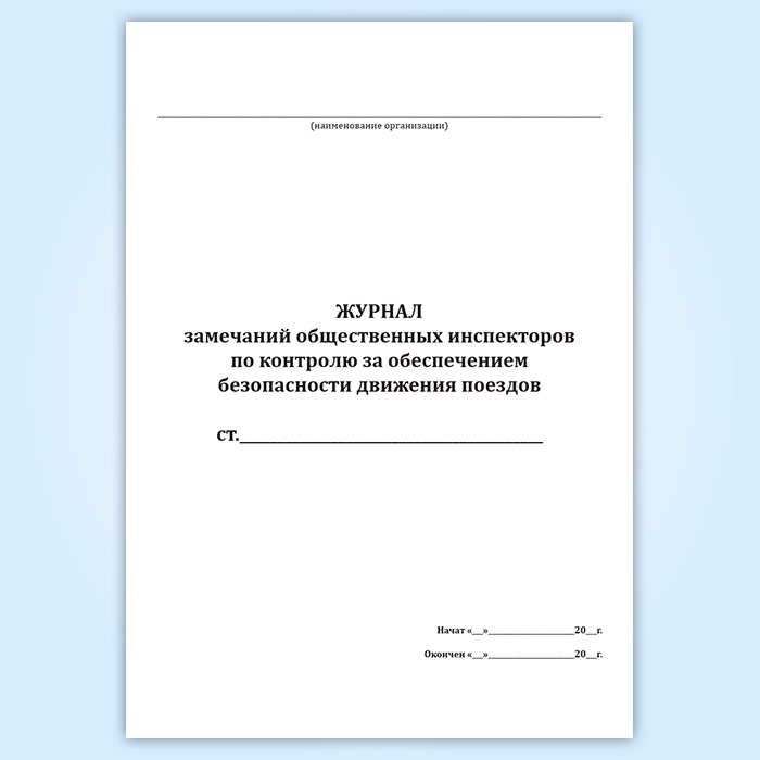 Журнал замечаний общественных инспекторов по контролю за обеспечением безопасности движения поездов в Волгограде купить