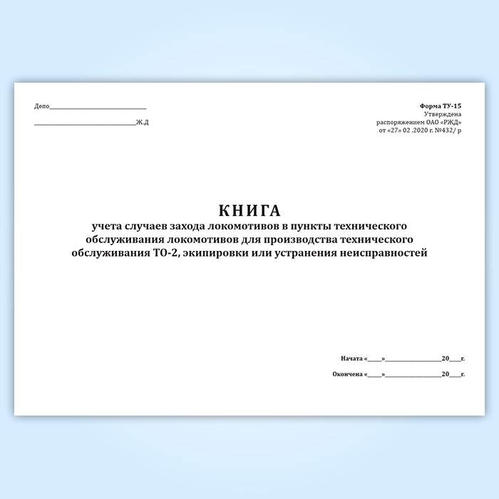 Книга учета случаев захода локомотивов в пункты технического обслуживания локомотивов для производства технического обслуживания ТО-2, экипировки или устранения неисправностей (форма ТУ-15) в Волгограде купить