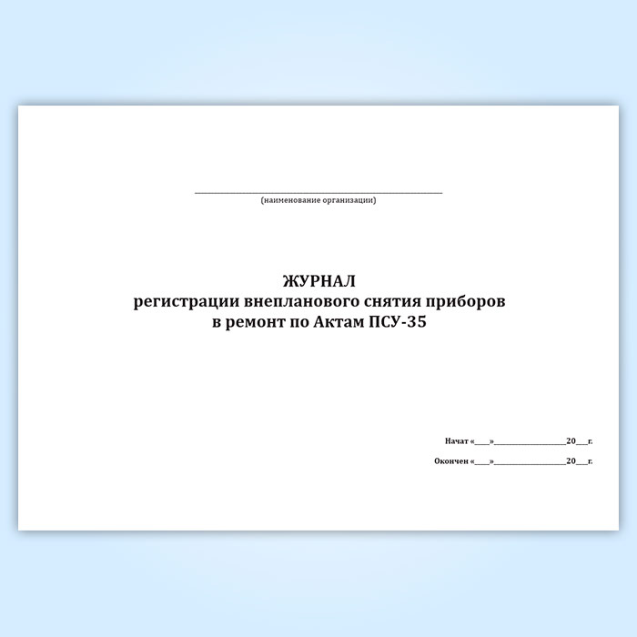 Журнал регистрации внепланового снятия приборов в ремонт по Актам ПСУ-35 в Волгограде купить