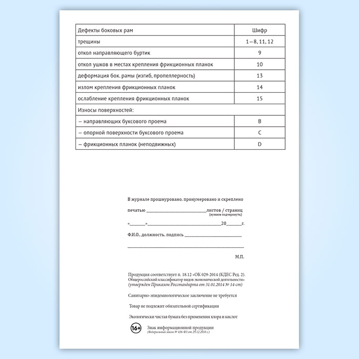 Журнал учета результатов осмотра и дефектоскопирования боковых рам тележек грузовых вагонов в Волгограде купить
