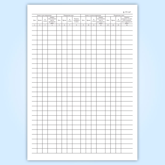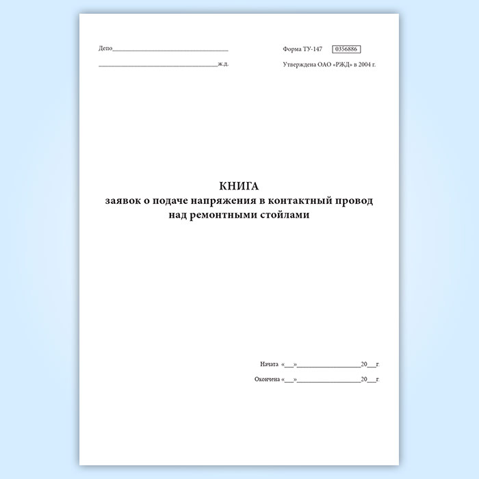 Книга заявок о подаче напряжения в контактный провод над ремонтными стойлами (форма ТУ-147) в Волгограде купить