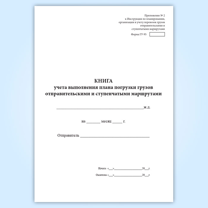 Книга учета выполнения плана погрузки грузов отправительскими и ступенчатыми маршрутами (форма ГУ-95) в Волгограде купить