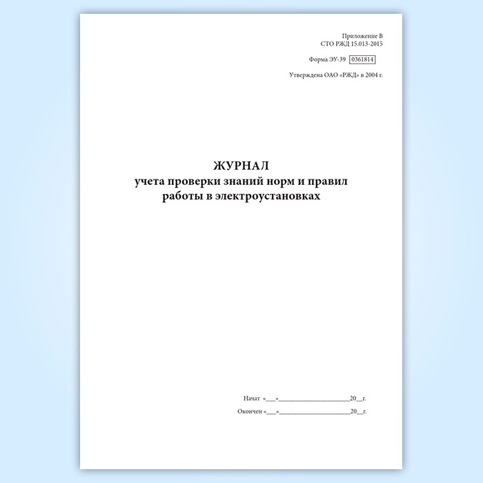 Журнал учета проверки знаний норм и правил работы в электроустановках (форма ЭУ-39) в Волгограде купить