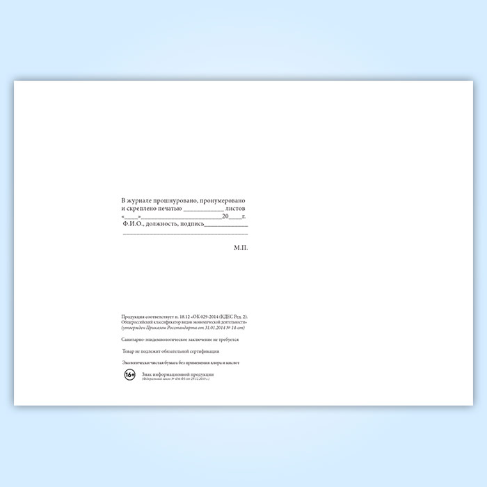 Вы получаете печатную продукцию прошнурованной и c местом для вашей печати в соответствии с действующими нормативными документами: