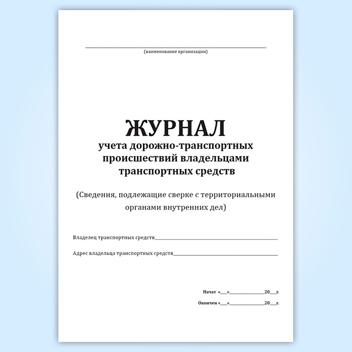 Журнал учета дорожно-транспортных происшествий владельцами транспортных средств (Сведения, подлежащие сверке с территориальными органами внутренних дел) в Волгограде купить