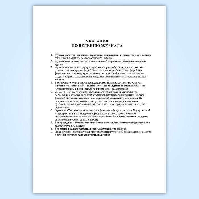 Журнал учета занятий по подготовке водителей транспортных средств категории «В» в Волгограде купить