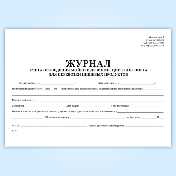 Журнал учета проведения мойки и дезинфекции транспорта для перевозки пищевых продуктов в Волгограде купить
