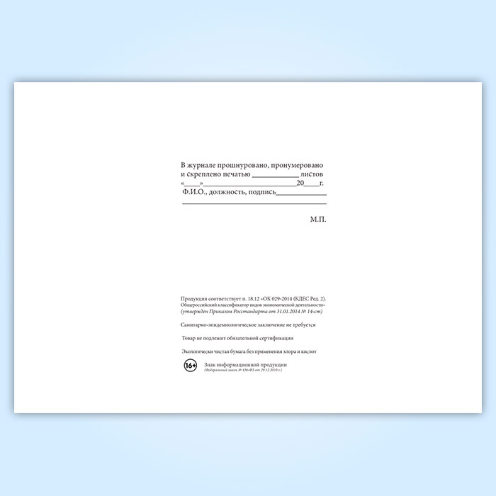 Вы получаете печатную продукцию прошнурованной и c местом для вашей печати в соответствии с действующими нормативными документами: