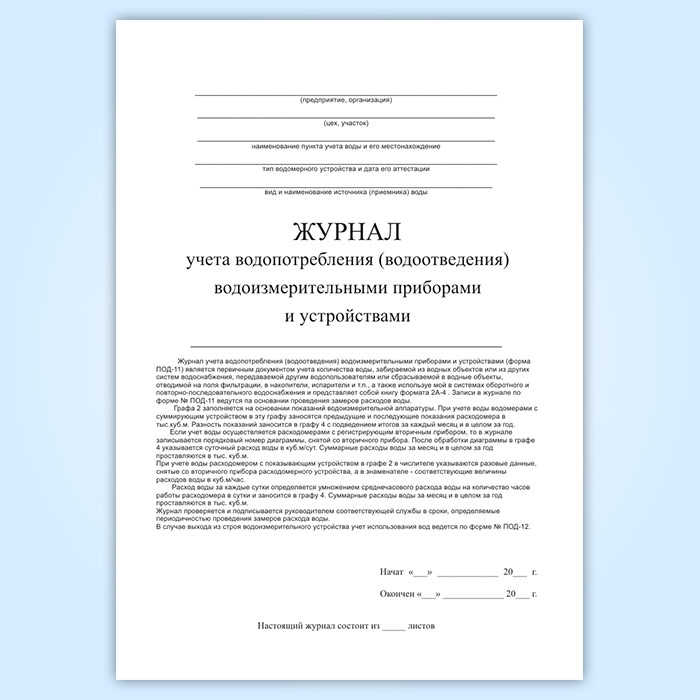 Журнал учета водопотребления (водоотведения) водоизмерительными приборами и устройствами (форма ПОД-11) в Волгограде купить