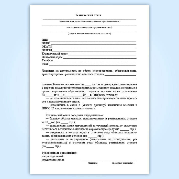 Технический отчет о неизменности производственного процесса, используемого сырья и об обращении с отходами в Волгограде купить