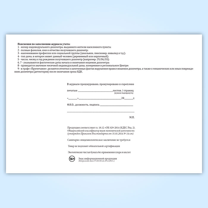 Журнал учета индивидуального дозиметрического контроля внешнего гамма-излучения в Волгограде купить