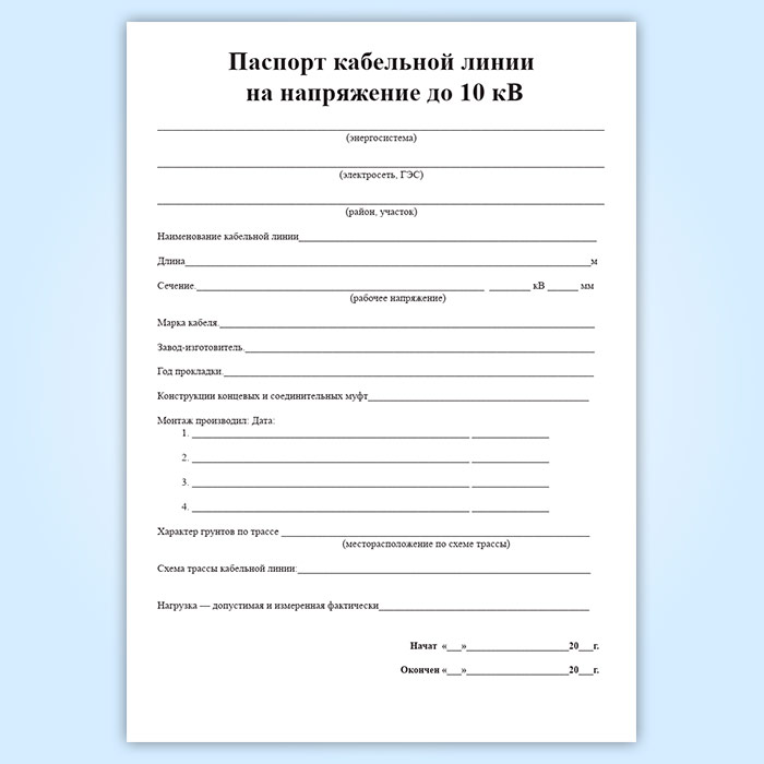 Паспорт кабельной линии на напряжение до 10 кВ в Волгограде купить