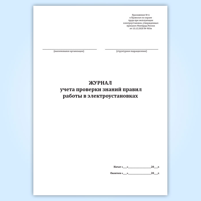 Журнал учета проверки знаний правил работы в электроустановках (Приложение 6) в Волгограде купить