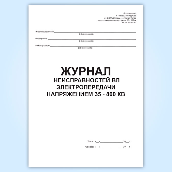Журнал учета работ на ВЛ электропередачи напряжением 35-800 квВ в Волгограде купить