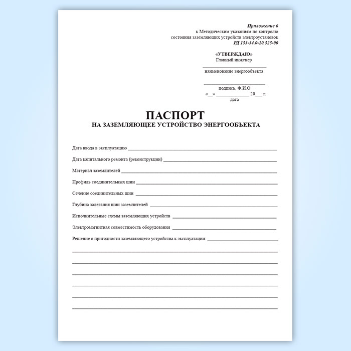 Паспорт на заземляющее устройство энергообъекта в Волгограде купить
