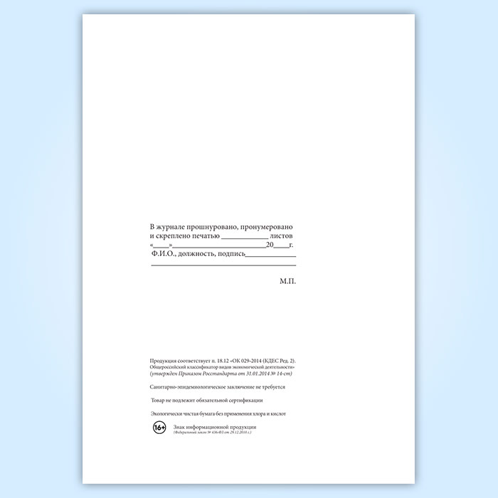 Вы получаете печатную продукцию прошнурованной и c местом для вашей печати в соответствии с действующими нормативными документами: