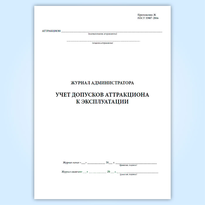 Журнал администратора. Учет допусков аттракциона к эксплуатации в Волгограде купить