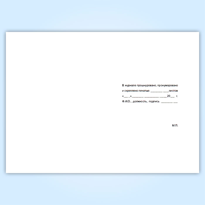 Вы получаете печатную продукцию прошнурованной и c местом для вашей печати в соответствии с действующими нормативными документами: