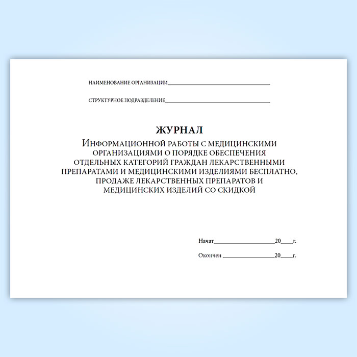 Журнал информационной работы с медицинскими организациями о порядке обеспечения отдельных категорий граждан лекарственными препаратами и медицинскими изделиями бесплатно, продаже лекарственных препаратов и медицинских изделий со скидкой в Волгограде купить