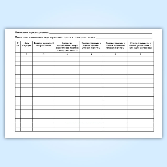 Журнал регистрации операций с использованными ампулами из-под наркотических средств и психотропных веществ у главной медицинской сестры стационарной медицинской организации в Волгограде купить