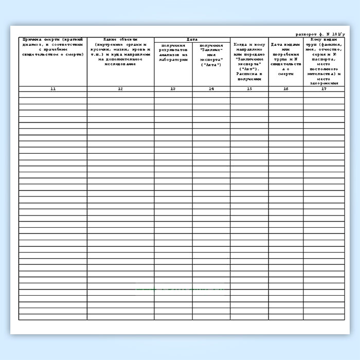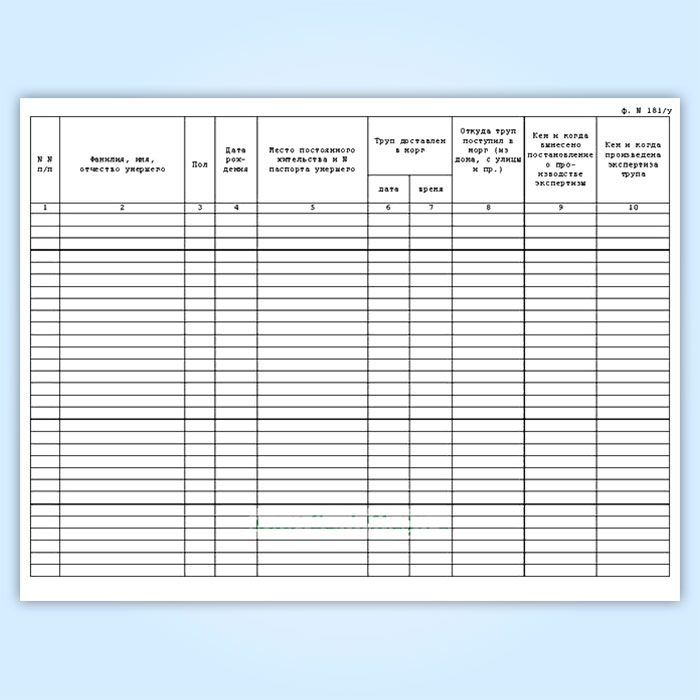 Журнал регистрации трупов в судебно-медицинском морге (форма 181у) в Волгограде купить