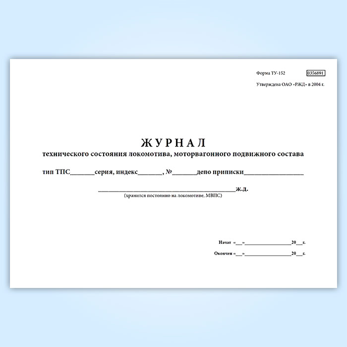 Журнал технического состояния локомотива, моторвагонного подвижного состава (форма № ТУ-152) в Волгограде купить