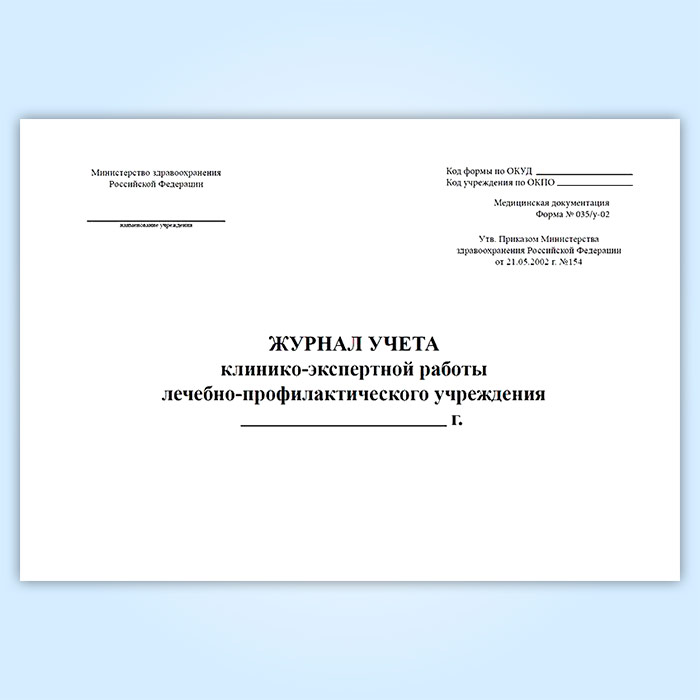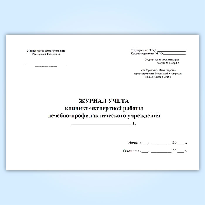 Журнал учета клинико-экспертной работы лечебно-профилактического учреждения (форма № 035/у-02) в Волгограде купить