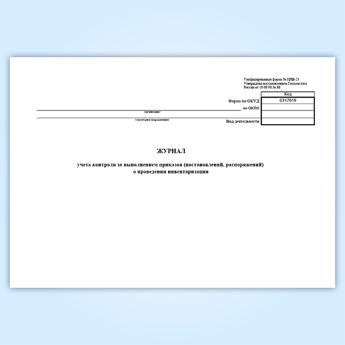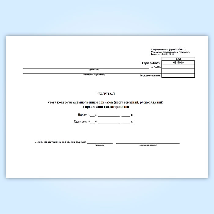 Журнал учета контроля за выполнением приказов (постановлений, распоряжений) о проведении инвентаризации (унифицированная форма ИНВ-23) в Волгограде купить