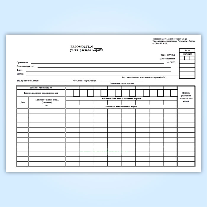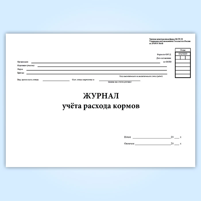 Журнал учета расхода кормов (форма № СП-20) в Волгограде купить