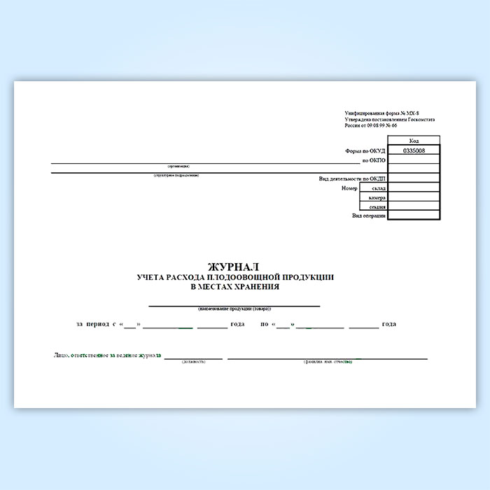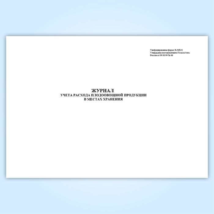 Журнал учета расхода плодоовощной продукции в местах хранения (форма МХ-8) в Волгограде купить