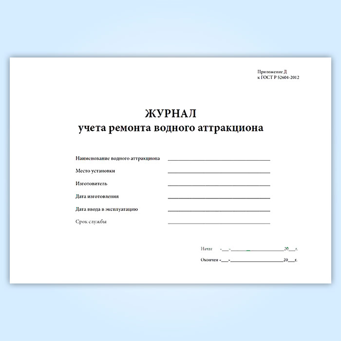Журнал учета ремонта водного аттракциона в Волгограде купить