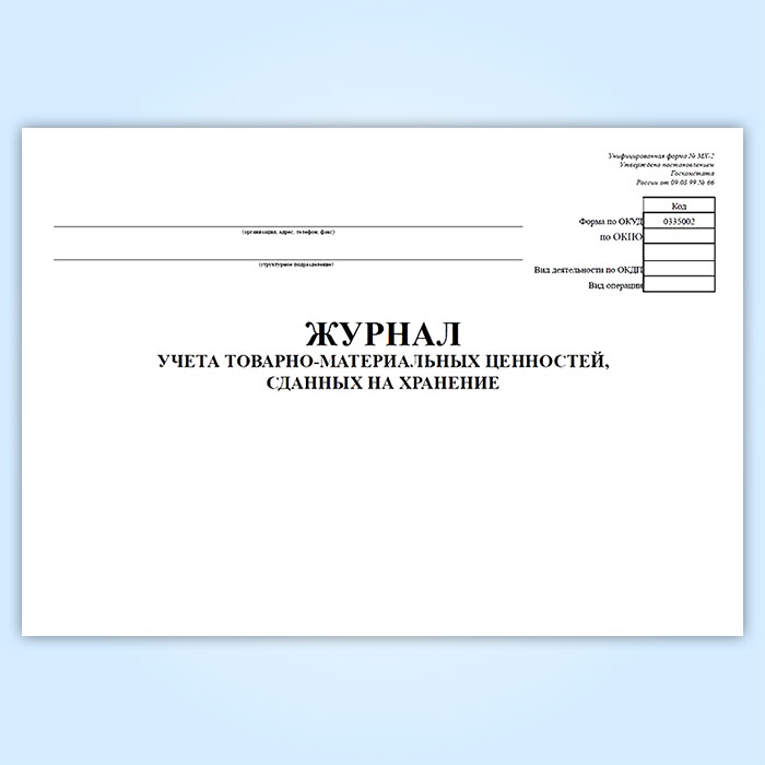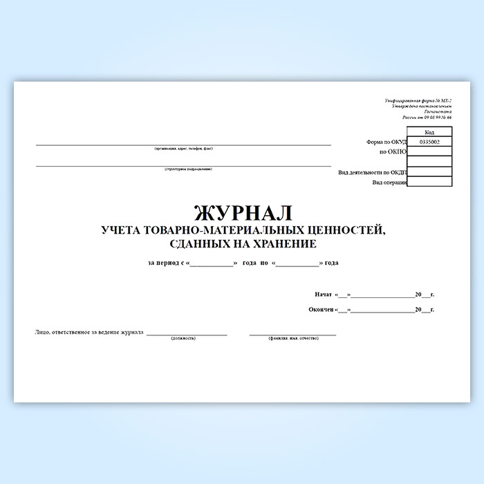 Журнал учета товарно-материальных ценностей, сданных на хранение (форма № МХ-2) в Волгограде купить