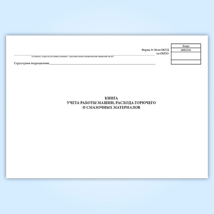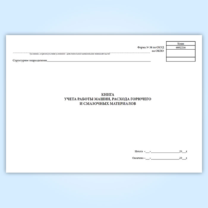 Книга учета работы машин, расхода горючего и смазочных материалов (форма 38, ОКУД 6002216) в Волгограде купить