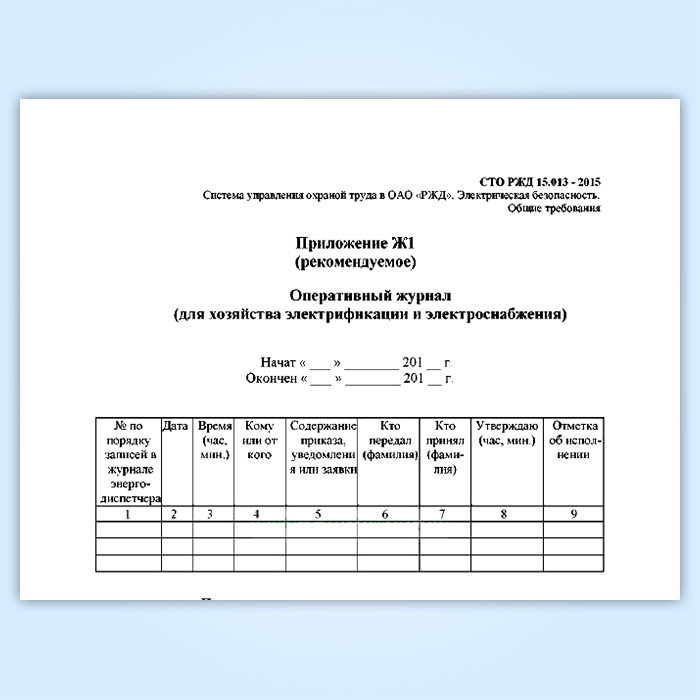 Оперативный журнал (для хозяйства электрификации и электроснабжения) (СТО РЖД 15.013-2015) в Волгограде купить