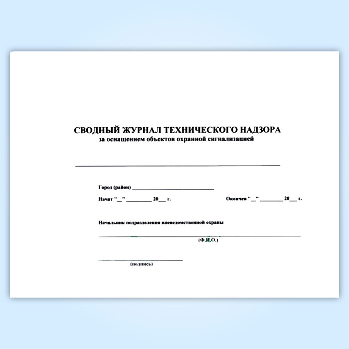 Сводный журнал технического надзора за оснащением объектов охранной сигнализацией в Волгограде купить