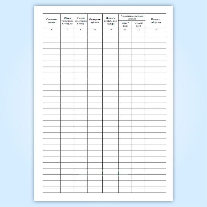 Журнал бетонных работ (13 граф) в Волгограде купить