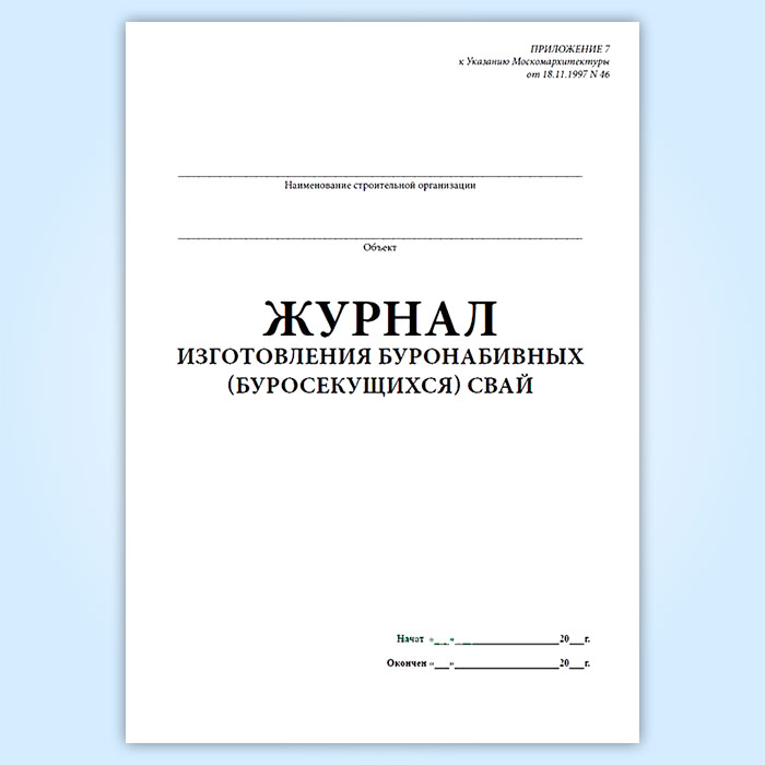 Журнал изготовления буронабивных (буросекущихся) свай в Волгограде купить