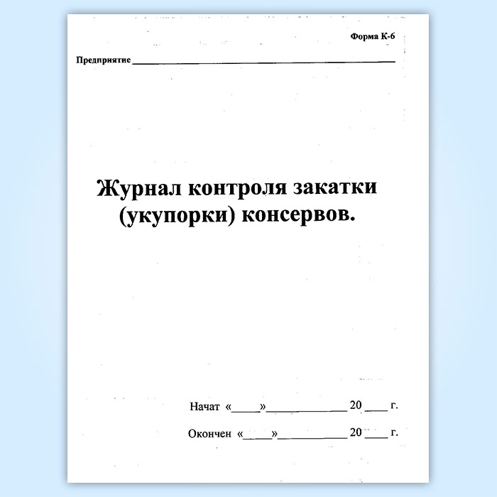 Журнал контроля закатки (укупорки) консервов (форма К-6) в Волгограде купить