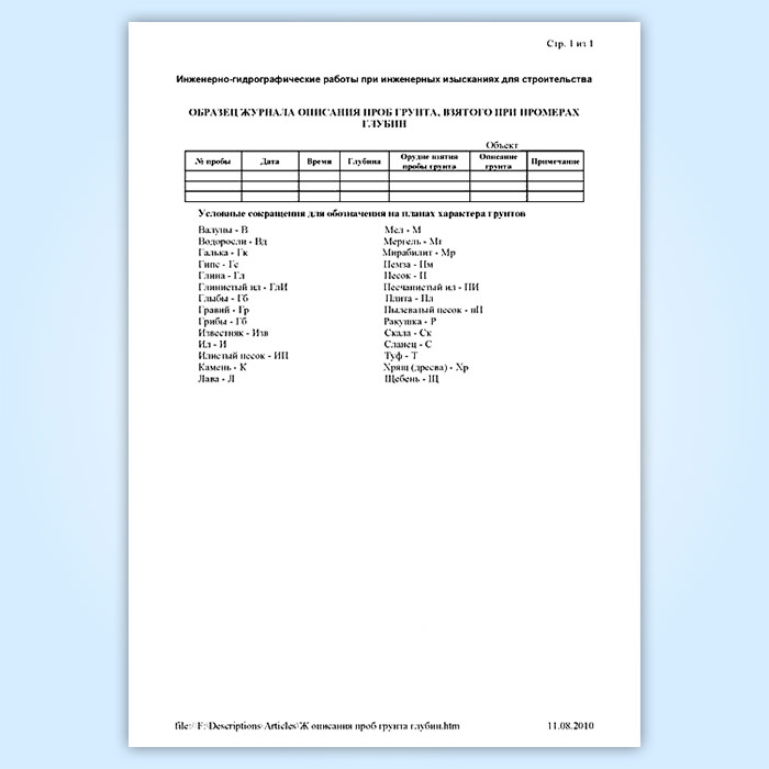 Журнал описания проб грунта, взятого при промерах в Волгограде купить