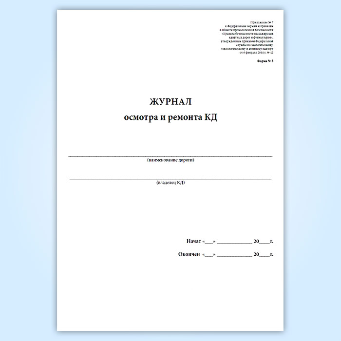 Журнал осмотра и ремонта канатной дороги. Натяжной канат к несущему канату (форма № 3) в Волгограде купить