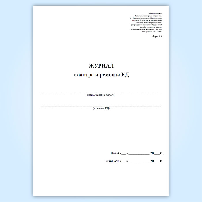 Журнал осмотра и ремонта канатной дороги. Натяжной канат к тяговому и несуще-тяговому канату (форма № 4) в Волгограде купить