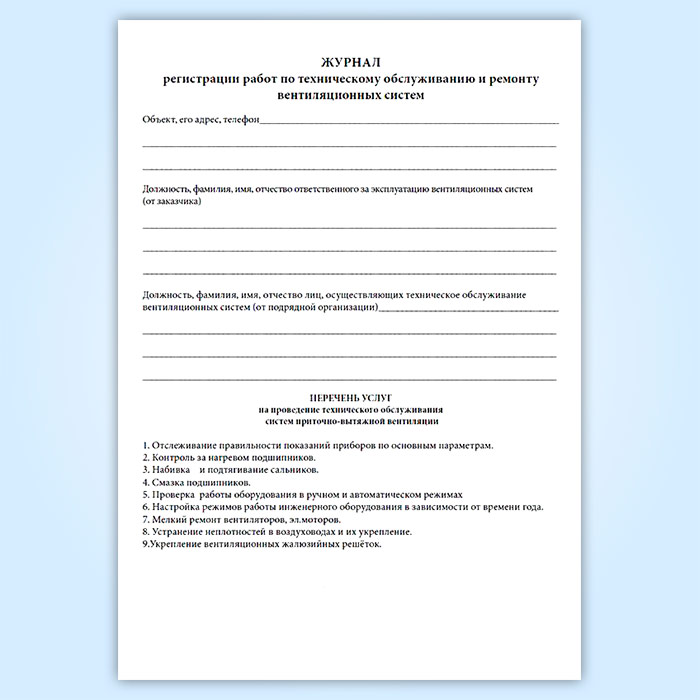 Журнал по техническому обслуживанию вентиляционных систем (систем кондиционирования) в Волгограде купить