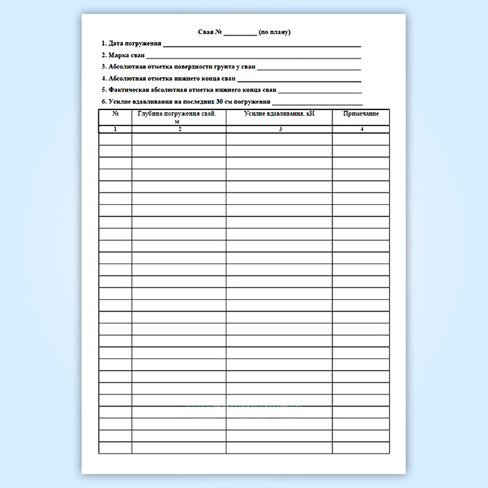 Журнал погружения вдавливаемых свай в Волгограде купить