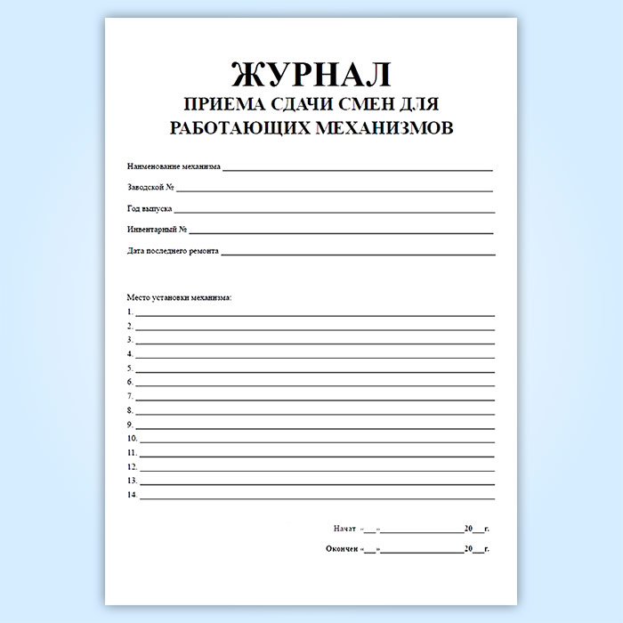 Журнал приема-сдачи смен для работающих на механизмах в Волгограде купить