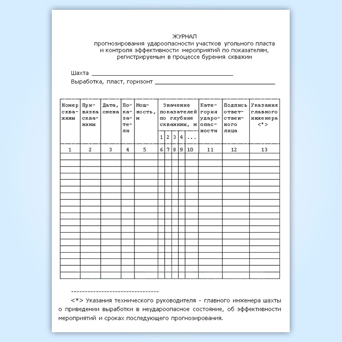 Журнал прогнозирования удароопасности участков угольного пласта и контроля эффективности мероприятий по показателям, регистрируемым в процессе бурения скважин в Волгограде купить