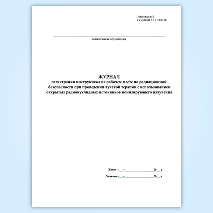 Журнал регистрации инструктажа на рабочем месте по радиационной безопасности при проведении лучевой терапии с использованием открытых радионуклиидных источников ионизирующего излучения в Волгограде купить